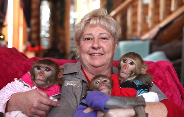 近日,美国伊利诺伊州比彻城53岁的中年妇女平基 雅诺塔(Airocolina 'Pinky' Janota)当起了猴妈妈,她给猴宝宝们喂奶、换尿布,甚至还教给它们简单的手语。平基和6只猴宝宝们相亲相爱,让动物庇护所里弥漫着浓浓的爱意和温暖。