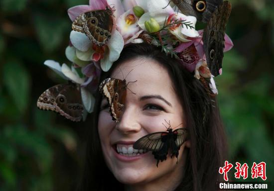 惊艳!英国举行蝴蝶展 美女以蝴蝶当配饰 高清