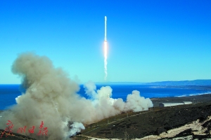 当地时间1月14日上午9时54分,白色高耸的猎鹰9号火箭从加州范登堡空军基地发射升空。