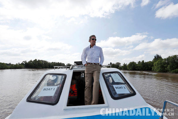 美国务卿克里湄公河巡游 白衬衫配墨镜船头摆pose(组图)