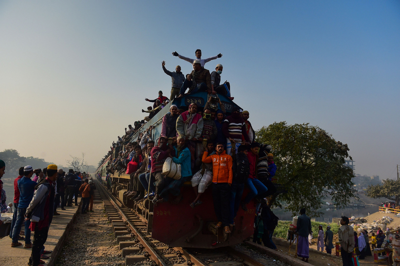 当地时间2017年1月15日,孟加拉国达卡,世界穆斯林宣教大会最后一天,抵达与离开的民众聚集在达卡郊区Tonji火车站。这场穆斯林集会是世界第二大穆斯林集会,为期三天。