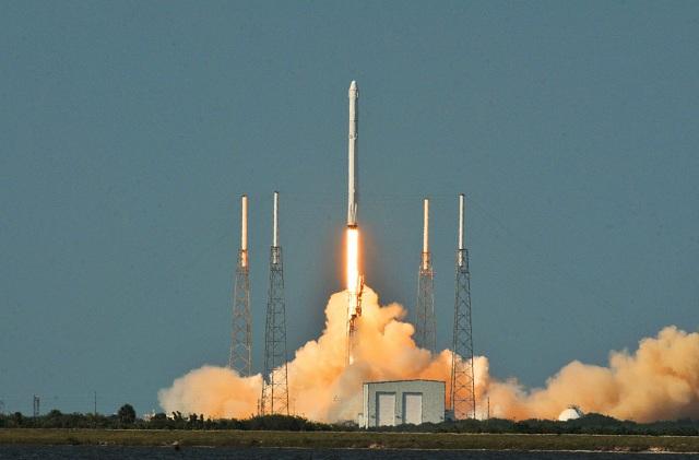 2016年4月8日,美国佛罗里达州卡纳维拉尔角空军基地,美国太空探索技术公司的“猎鹰9”火箭发射升空。(新华社/美联)
