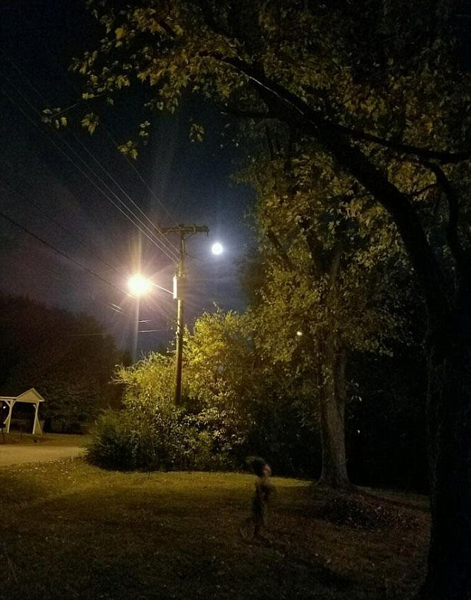 据悉,照片的拍摄者是连续按下快门拍到这两张照片的,间隔时间只有一秒。在拍摄时,该男子和他的家人们眼前所看到的只是一片空草坪,上面没有任何东西,随后,在浏览照片时,才发现一张照片中草坪上模糊的身影。该男子称,照片绝对没有经过PS处理,而且也排除了镜头上有污渍导致这种现象出现的可能性,因为第二张照片显示,在路灯的照明下,怪异的“东西”在草坪上还留有影子。