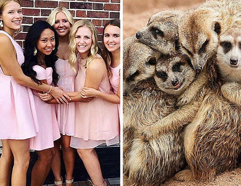 美大学女生晒合照配神似猫鼬萌照 喜感十足(组图)