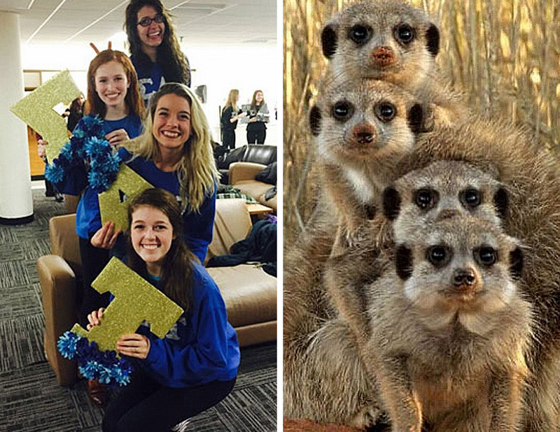 美大学女生晒合照配神似猫鼬萌照 喜感十足(组图)