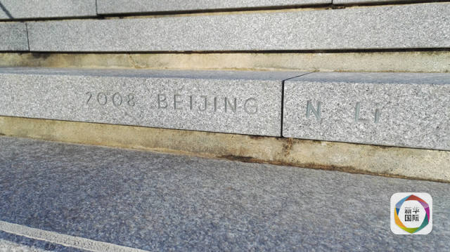 刻着北京奥运会最后一棒火炬手李宁名字的台阶。新华社记者高鹏摄