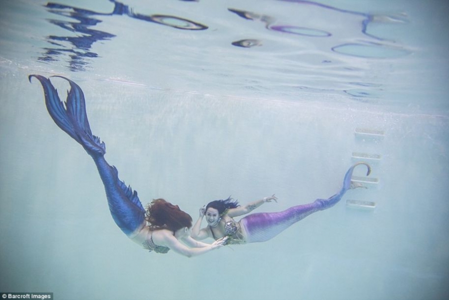 据英国《每日邮报》1月16日报道,当Caitlin Nielsen告诉她的幼儿园老师她长大想要成为一条美人鱼时,所有的小伙伴都嘲笑她的想法,然而今年32岁的Caitlin实现了自己的梦想,她成为一个神秘的“美人鱼”团体成员,该组织成员把自己定义为“人鱼”。图为“美人鱼” Caitlin Nielsen (左)和Tessie LaMourea(右)。编译/余诗泉(参考消息网独家编译,转载请注明出处)