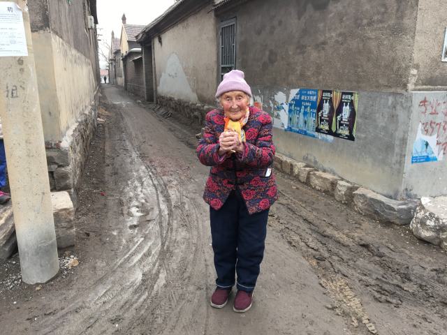花棉袄、毛线帽、黄丝巾,穿着虽与中国农村老太太并无两样,但高鼻深目、蓝色的眼睛仍向我们讲述着她那不同寻常的过去。
