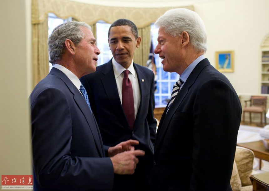 2010年1月16日: 一图收入三位总统,奥巴马就如何对海地地震给以人道援助征求两位前总统——小布什和克林顿——的建议。