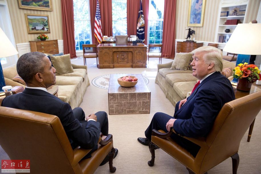 2016年11月10日:在美国大选尘埃落定两日后,奥巴马会见候任总统特朗普。