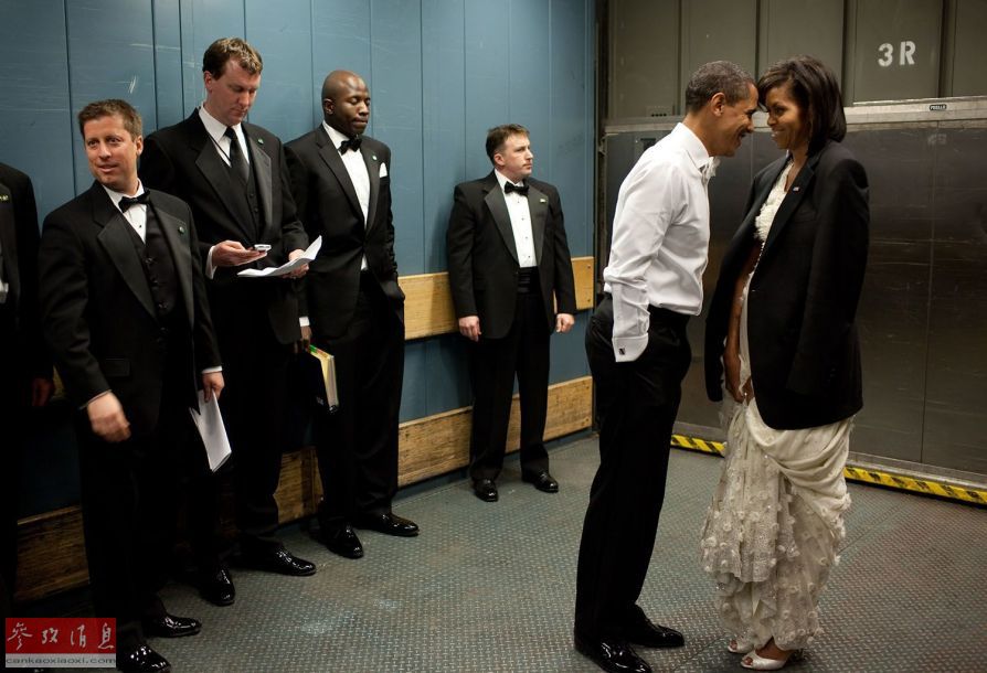 据法国《快报》周刊网站报道,皮特·苏扎自2009年担任白宫首席摄影师,他和他的团队在最接近美国权力中心的地方拍摄了200多万张照片。在华盛顿即将进行权力交接之际,奉上一些具有历史意义的、美妙的或令人心生感动的照片。图为2009年1月20日:奥巴马和夫人米歇尔乘坐员工电梯,准备去参加就职舞会。摄影师苏扎:“气氛欢快,当着众多特工的面,新总统脱掉西服给妻子披上。”
