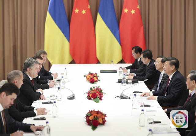 1月17日,国家主席习近平在瑞士达沃斯会见乌克兰总统波罗申科。(新华社记者 丁林 摄)