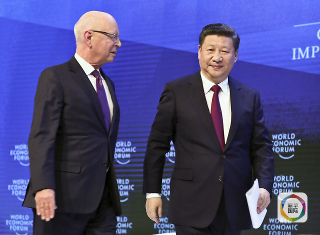 1月17日,国家主席习近平在瑞士达沃斯国际会议中心出席世界经济论坛2017年年会开幕式,并发表题为《共担时代责任 共促全球发展》的主旨演讲。这是习近平同世界经济论坛创始人兼执行主席施瓦布在一起。(新华社记者 兰红光 摄)
