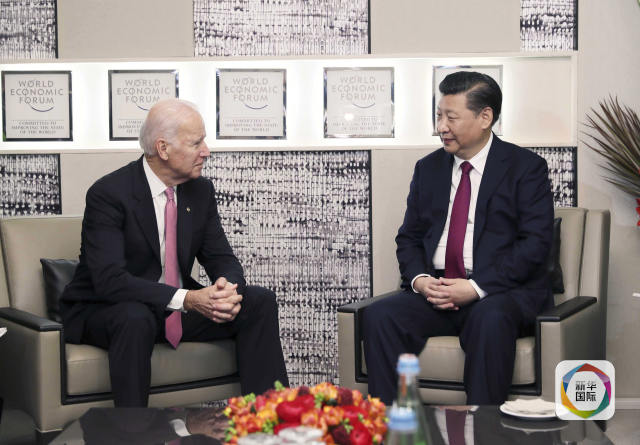 1月17日,国家主席习近平在瑞士达沃斯会见美国副总统拜登。(新华社记者 兰红光 摄)