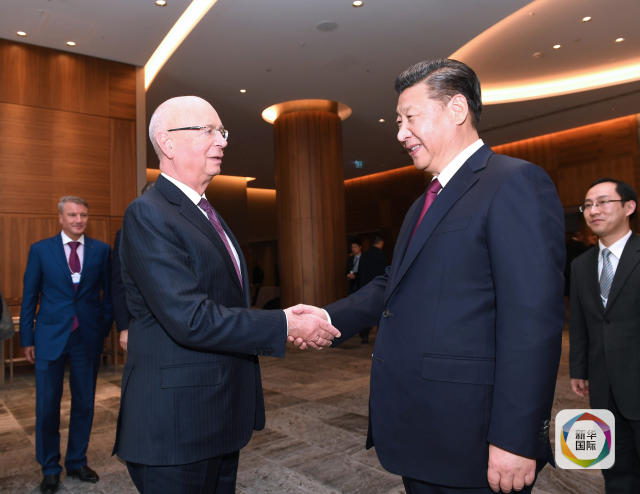 1月17日,国家主席习近平在瑞士达沃斯会见世界经济论坛主席施瓦布。(新华社记者 饶爱民 摄)