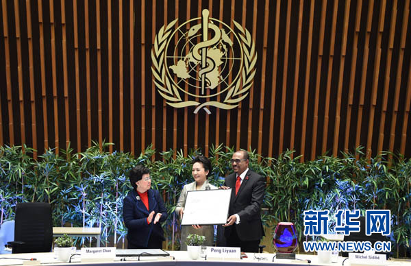彭丽媛出席世界卫生组织结核病和艾滋病防治亲善大使任期续延暨颁奖仪式