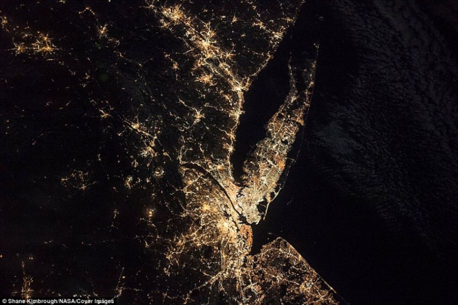 图为宇航员Shane Kimbrough拍摄的夜景。