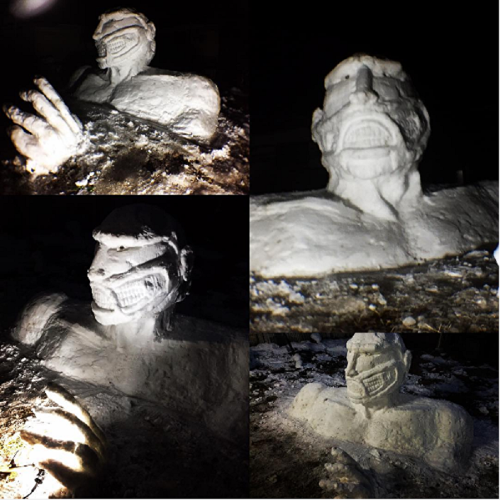 日本动漫《进击的巨人》主人公艾伦变身后的样子在夜色中看起来确实挺可怕。