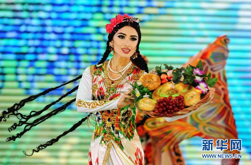 1月18日晚,乌兹别克斯坦首都塔什干人民友谊宫,乌兹别克斯坦舞蹈演员在表演中乌传统舞蹈。