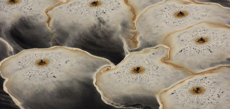造纸厂排出的废弃物在鼓风机的搅动下,冒出蒸汽和泡沫,再经由风的吹动,形成如此画面。该照片是在1500英尺(约457米)高的飞机上拍摄的。