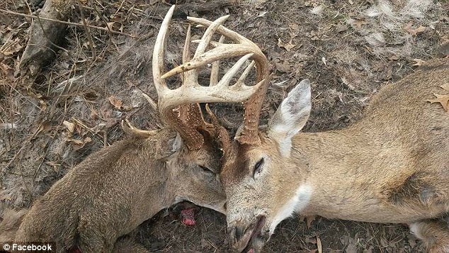 约翰·丹斯摩尔(John Densmore)在“脸谱”网密苏里猎鹿人群里发布了死鹿的照片并写道:“幸亏它们才死了几天因此我们能把它们交给剥制师制成标本,这两只会被合制在一起。”(实习编译:王林娟 审稿:朱盈库)