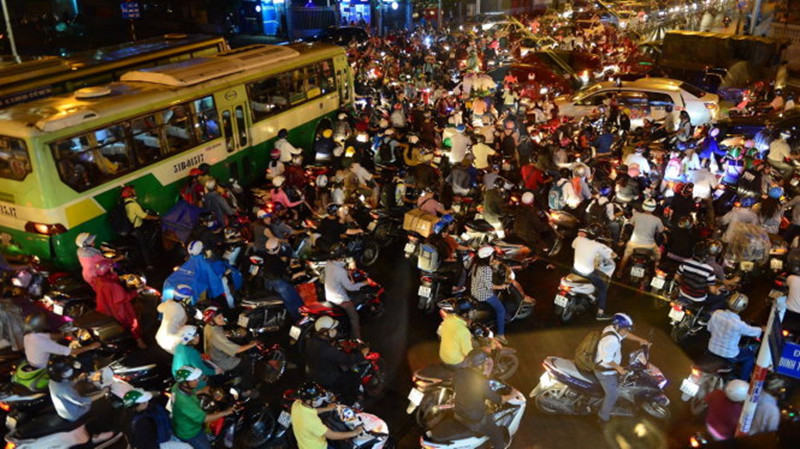 据越南青年新闻网1月21日报道,日前,越南与中国一样,正式进入了“春运”的高峰时段。在上周五,也就是阴历23日“小年”,越南首都河内和胡志明市数百万摩托车与机动车混在在一起,上演了一幕“春运大塞车”。