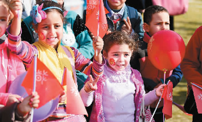 1月20日,在埃及首都开罗,小朋友们参加欢乐春节大庙会活动。新华社记者 赵丁喆摄