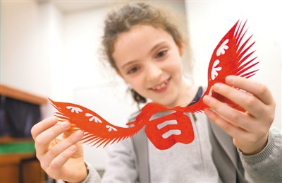 1月19日,一名女孩在加拿大多伦多公共图书馆春节活动现场欣赏剪纸作品。邹 峥摄(新华社发)