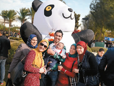 1月20日,在埃及首都开罗,人们在春节大庙会上合影留念。新华社记者 赵丁喆摄