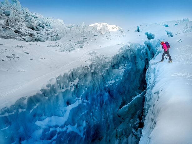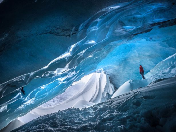 日,英国33岁男子李•麦克卢格(Leigh McClurg)与妻子斯普林(Spring)在攀爬加拿大落基山脉上的亚大巴斯卡冰川(Athabasca Glacier)时探入千年冰穴。冰穴內严寒难挡,但冰雪景色迷人,梦幻场景让人恍若置身异世。