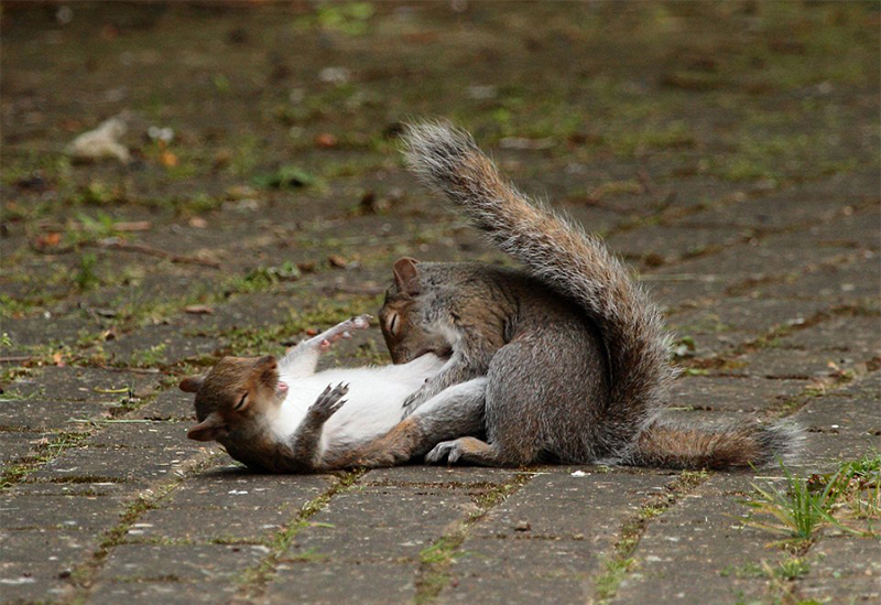 英国两松鼠为争食大打出手似忍者决斗(组图)