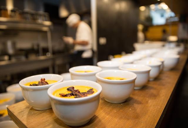 1月24日,餐厅当晚为流浪汉提供的前菜培根南瓜羹。(新华社记者李明摄)