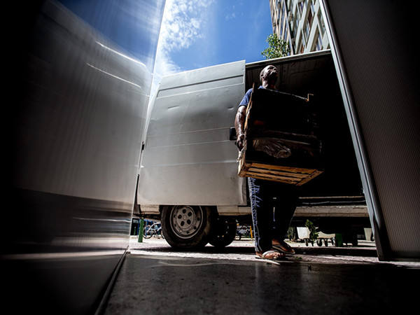 1月24日,一名货车司机将从超市运来的食材搬进“美食动力”餐厅。(新华社记者李明摄)
