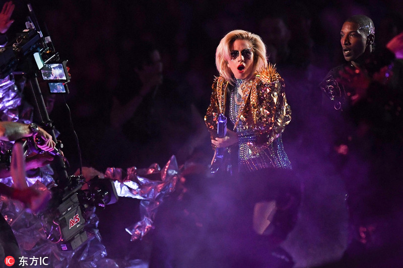 “美国春晚”超级碗中场秀:lady Gaga从天而降!(组图)