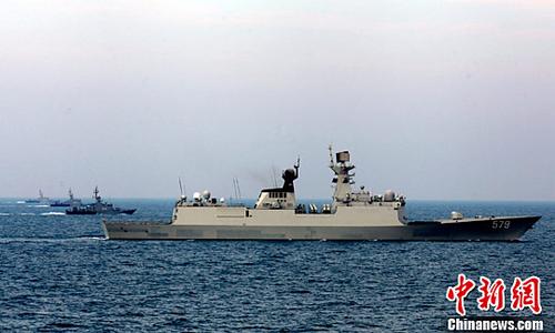 当地时间2月5日,科威特某海域,中国海军第二十四批护航编队哈尔滨舰、邯郸舰与科海军三艘舰艇进行了中科海军小型联演,重点进行了通信联络和编队运动联合演练。中新社发 韩丰军 摄