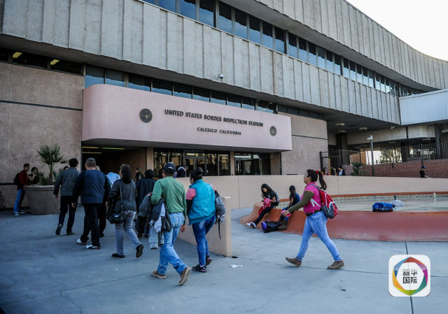 在卡莱克西科,墨西哥人准备进入海关关口回到墨西哥。(新华社记者张超群摄)