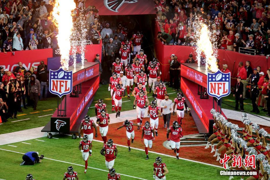 当地时间2月5日,第51届美国橄榄球联盟(NFL)“超级碗”比赛在休斯敦NRG体育场落下帷幕,新英格兰爱国者队在最后一节和加时赛中疯狂反扑,以34比28逆转亚特兰大猎鹰队夺得总冠军。图为参赛选手入场。 中新社记者 王欢 摄