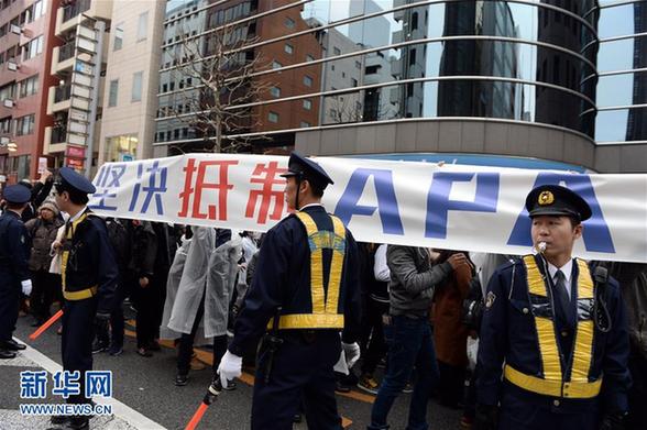 日媒称,为抗议日本APA酒店在客房内放置否认南京大屠杀的书籍,约100名在日中国人等5日在东京新宿举行了示威游行。