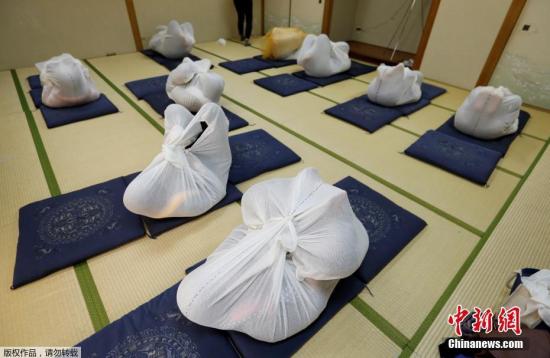 近来,日本各地正流行一种新的治疗方法,即将人裹在一块透气的大布中,模拟母亲子宫的舒适感,据称矫正姿势和缓解身体僵硬,引来不少不堪压力重负的人们前来一试。