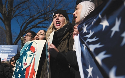 2月4日,美国首都华盛顿,民众抗议特朗普的“穆斯林禁令”。本版图片/视觉中国