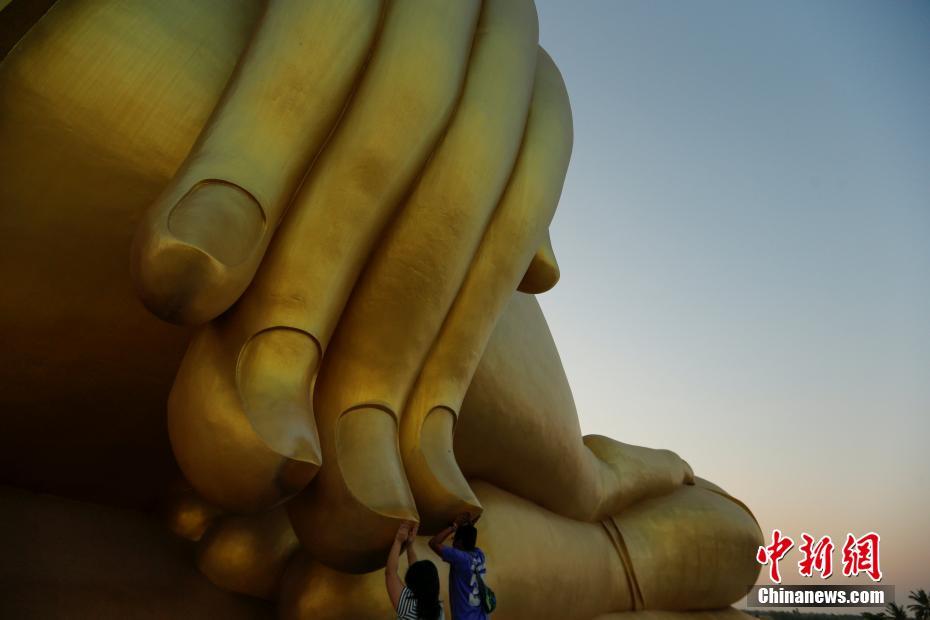 当地时间2017年2月11日,泰国红统府,民众在佛像前祷告,庆祝万佛节。