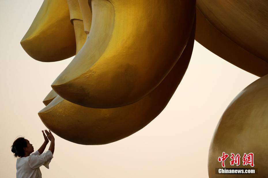 当地时间2017年2月11日,泰国红统府,民众在佛像前祷告,庆祝万佛节。