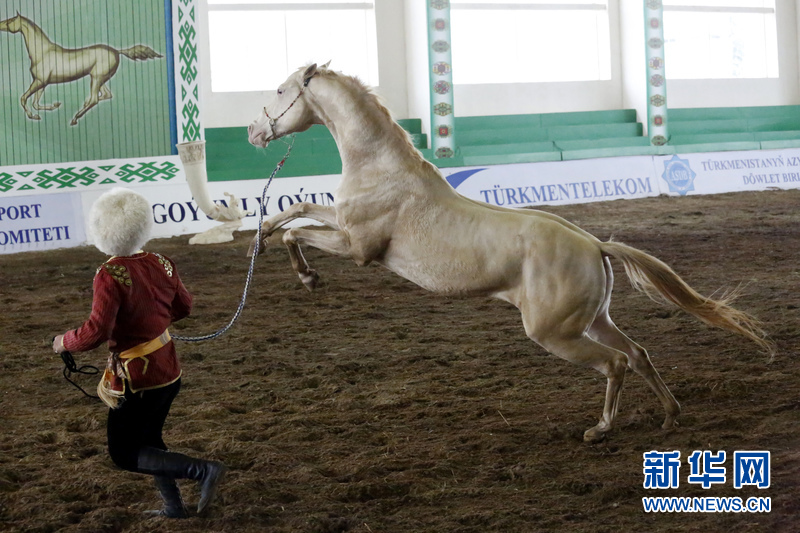 图为养马人在训练汗血宝马。新华网记者 周良 摄