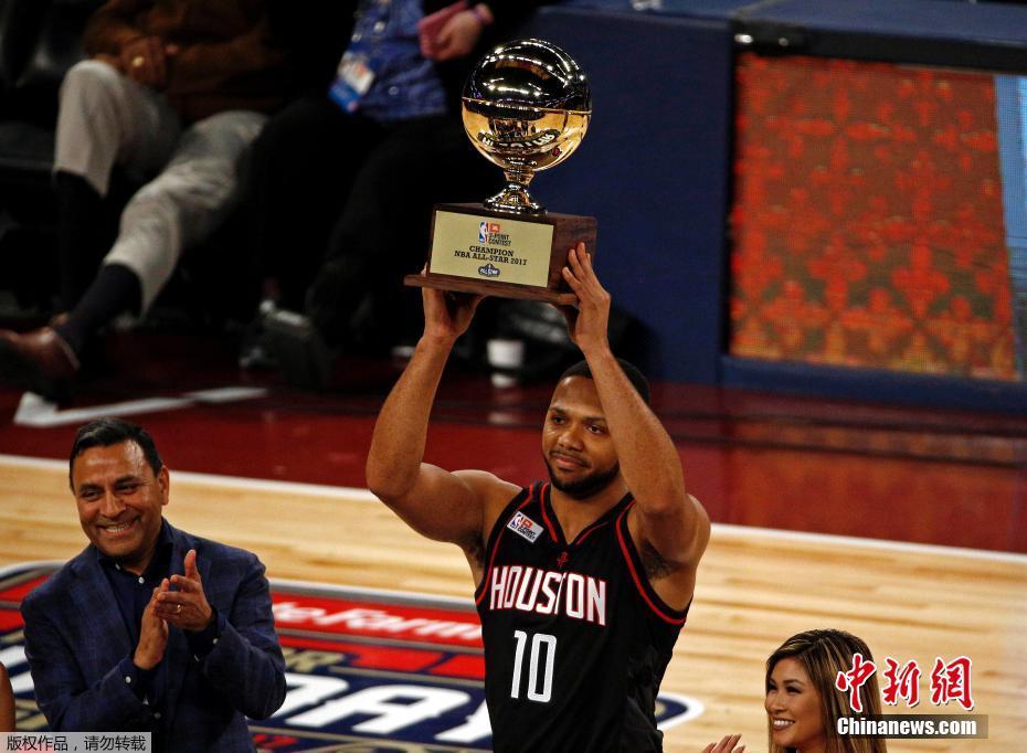北京时间2月19日,在NBA全明星周末三分大赛上,来自火箭的埃里克-戈登战胜欧文成为新科三分王。