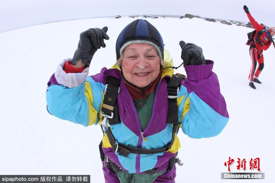 俄80岁老奶奶生日当天完成高空跳伞(组图)