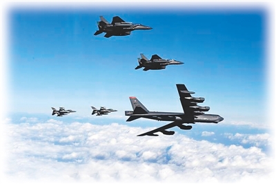 美军B52飞入朝鲜半岛空域。(资料图片)