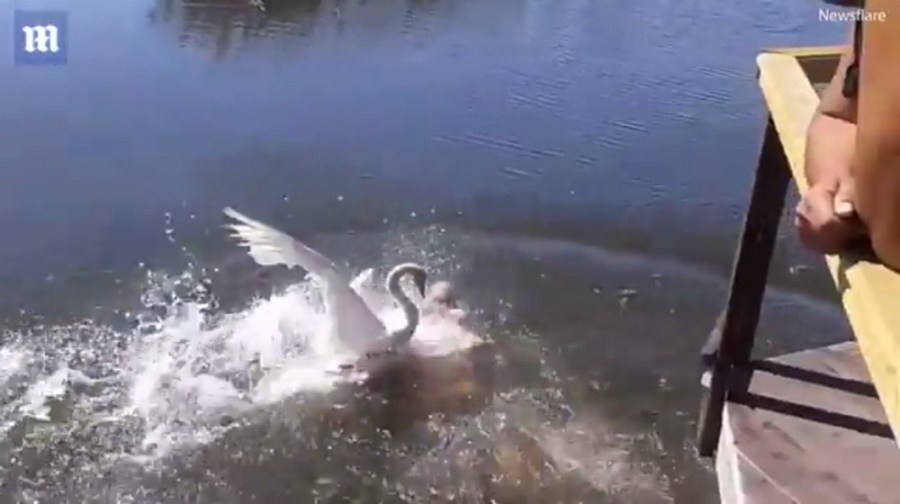 战斗民族的鹅!俄罗斯男子游泳遭天鹅围攻(组图)