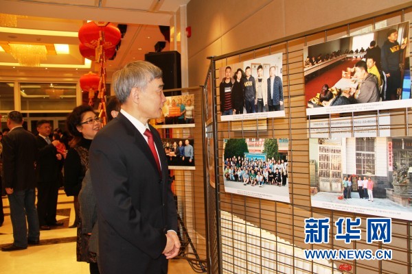 中国驻比利时大使曲星(右一)参观图片展。新华网记者潘革平摄
