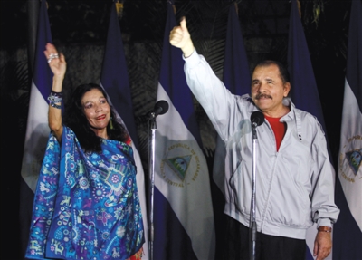 尼加拉瓜总统奥尔特加和妻子穆里略。