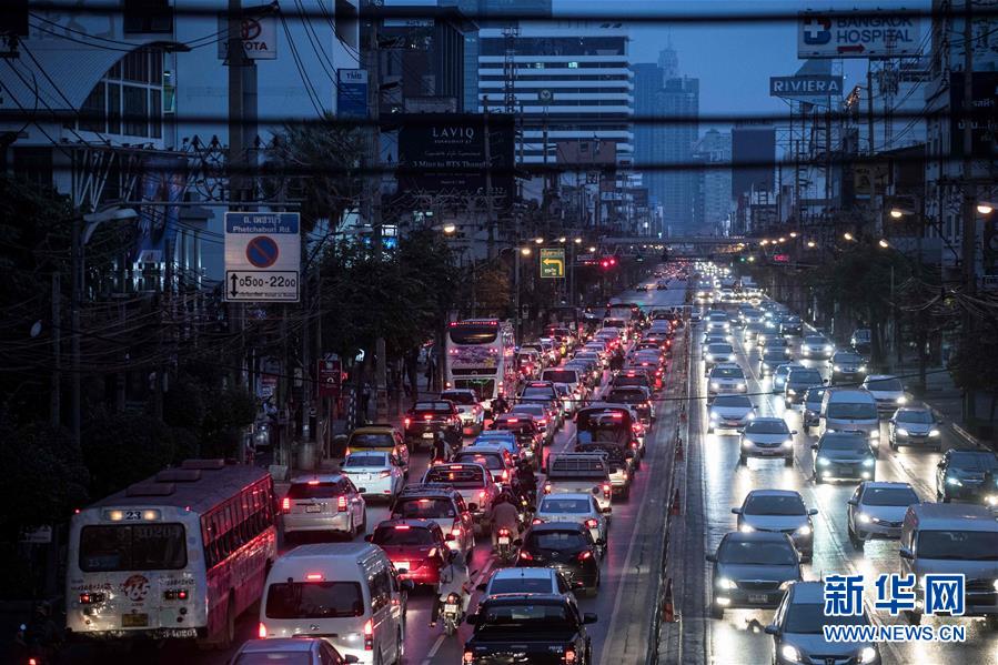 2月22日,在泰国首都曼谷,大量车辆行驶在一条街道上。新华社/法新